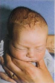This neonate presents 24 hours after birth with a soft cystic swelling limited to the right parietal bone. It had a well-defined outline and overlying scalp was normal. It did not become tense with crying of the baby. The baby was delivered vaginally to a healthy mother and there were no immediate postnatal complications.